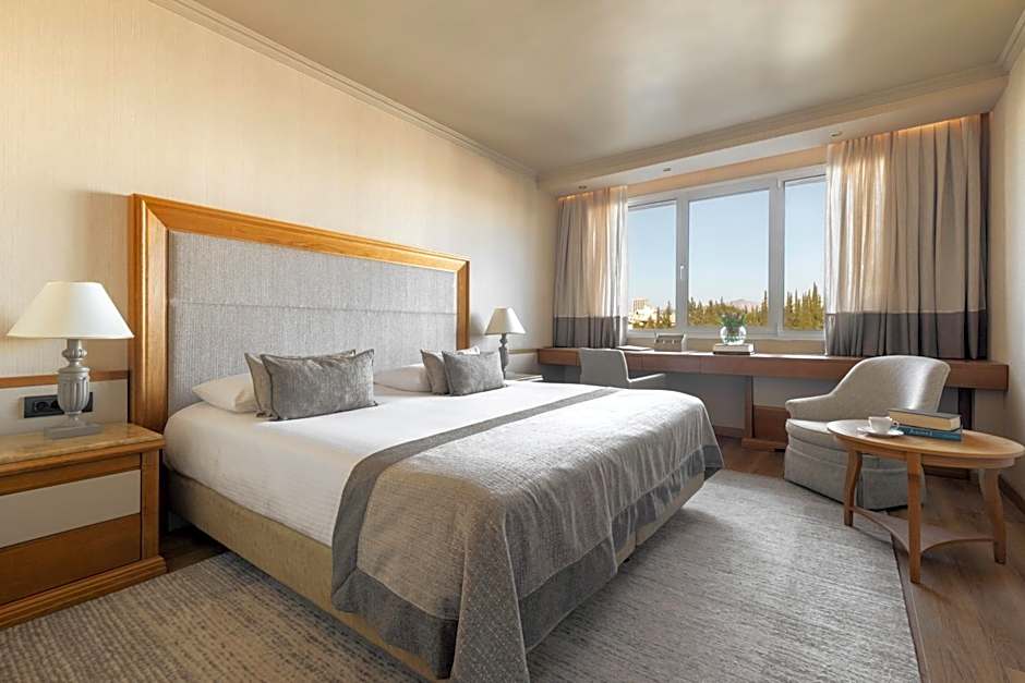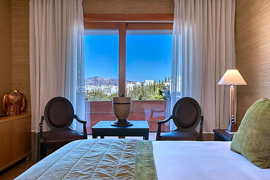 This two-bedroom Presidential Suite, offering a feeling of staying in a chic apartment, is located on the 7th floor, where guests can admire the breathtaking views of Athens, the Acropolis and Lycabettus Hill. The Suite has two marble bathrooms, one for each room, a stylish walk-in closet, a beautiful dining area, a luxurious living room, a private sauna and fully furnished verandas with amazing views. This Suite has been home to royalty, world class leaders and countless celebrities throughout the years.