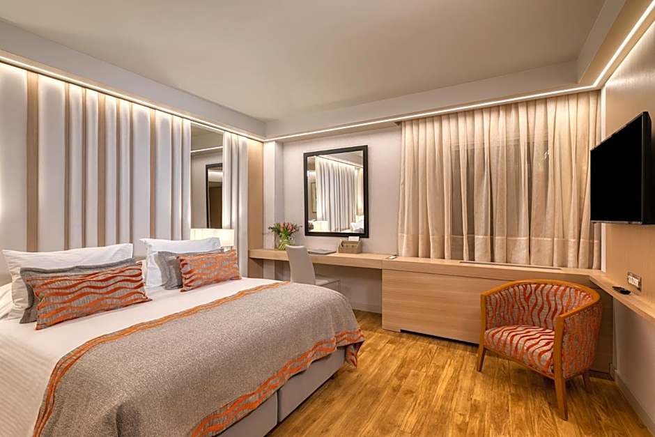 Luxury and modernity blend in perfect harmony. Our Superior rooms with neutral palettes, cozy bedroom and spacious bathroom will make you feel right at home. These rooms offer spectacular views of the city, park or Lycabettus Hill.